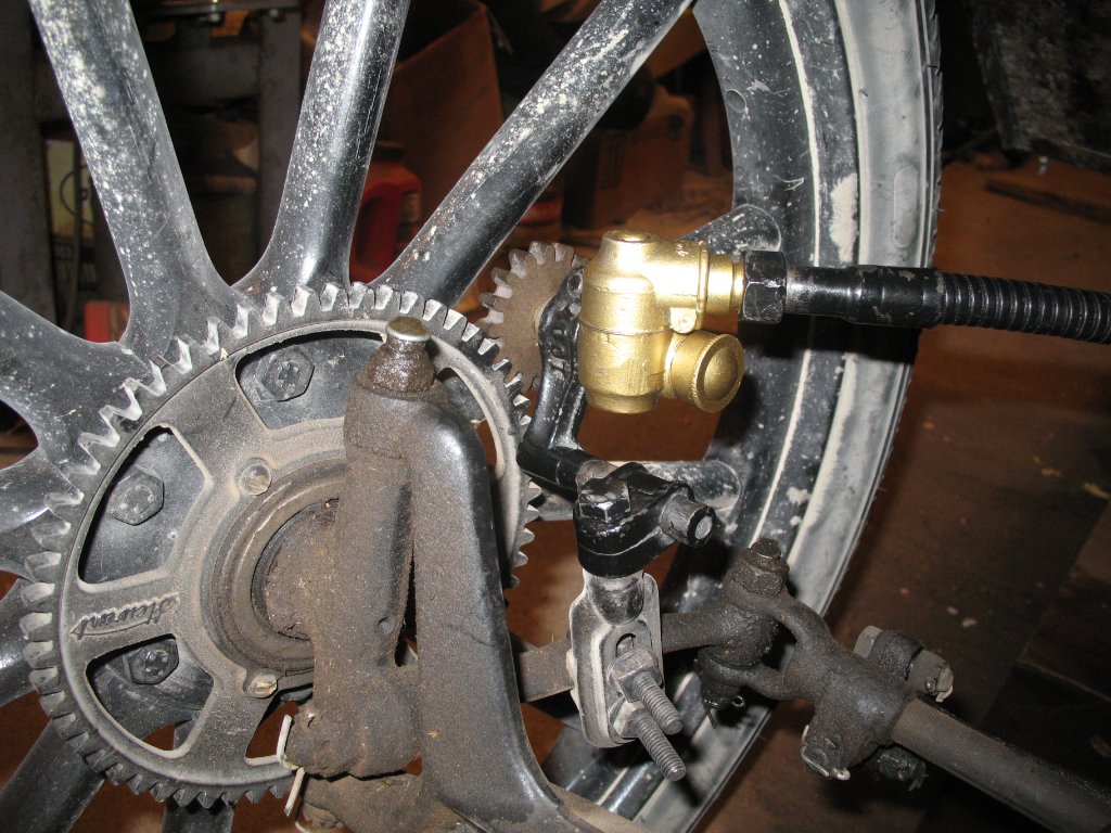 This shows the screws that hold the Stewart road gear against the machined hub flange. The hub has Ford-supplied holes for the screws. If your hub is later than 1918 you need a gear that mounts on spacers and is screwed to the spokes, and you need to be very careful to get it centered. Russ Furstnow's book tells you which speedometers are right for your year (several companies made them).