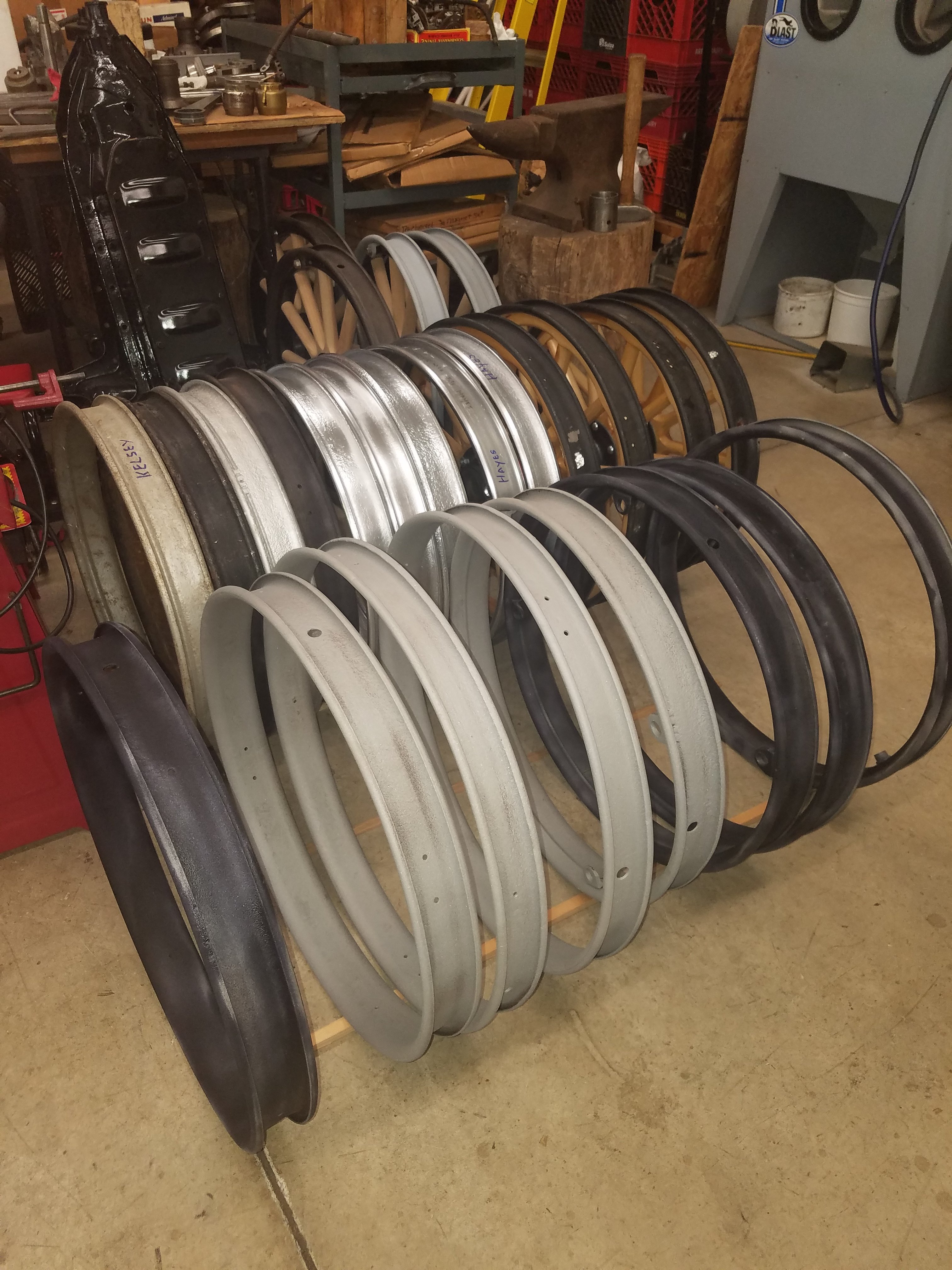 I replaced 4 tires, tubes and flaps on my '27 Coupe back in August. Got to do my first flat fix in October. I went out in the shop and noticed that my right rear tire was flat. Picked up a roofing nail. It isn't that hard of a job but I'm going to need a better turn buckle to pull in the 21" split rims.