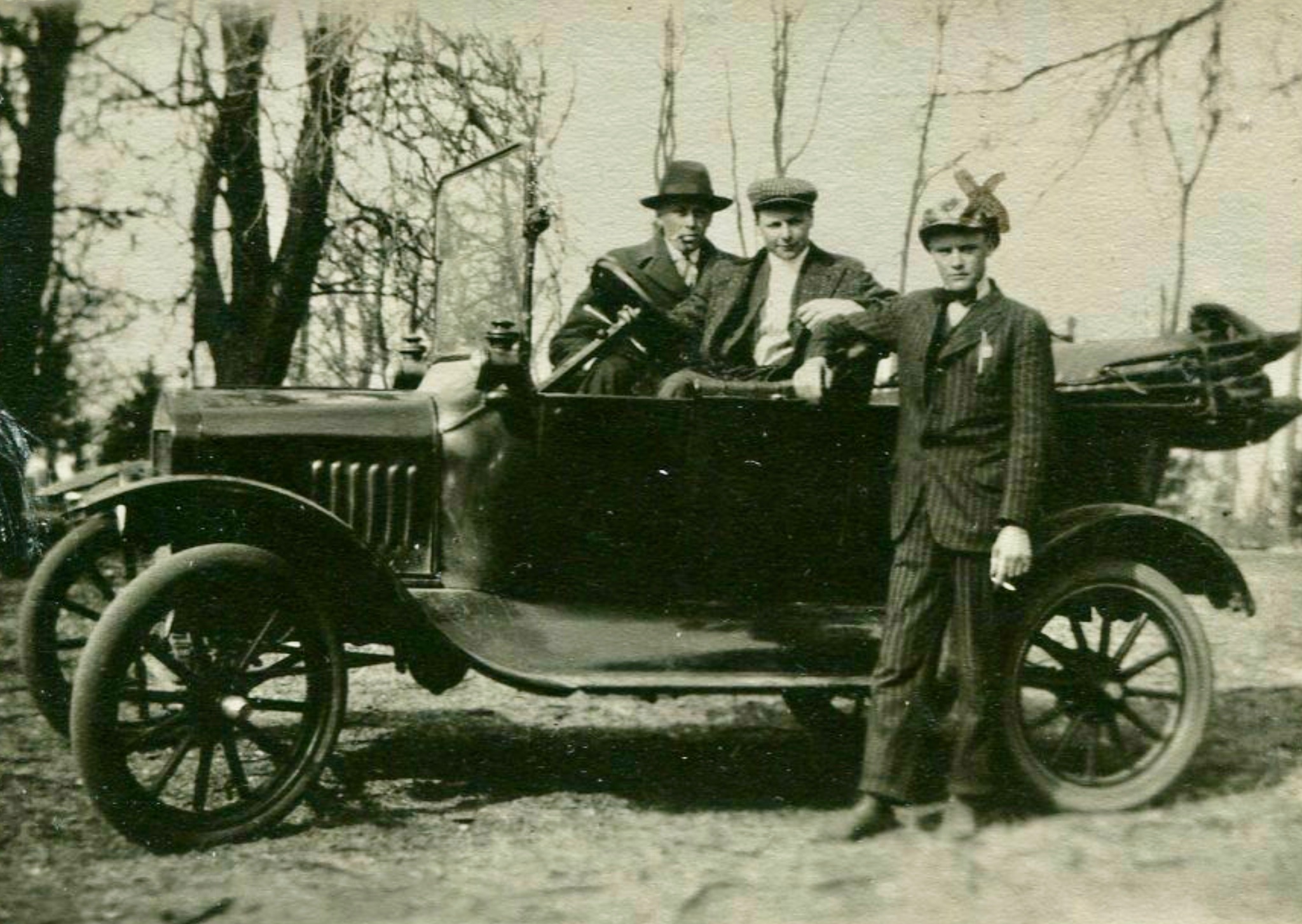 The body is rusted through right below the drivers side. This T was old and slow by the time this photo was taken. You can just see a mid 30’s car in the photo.