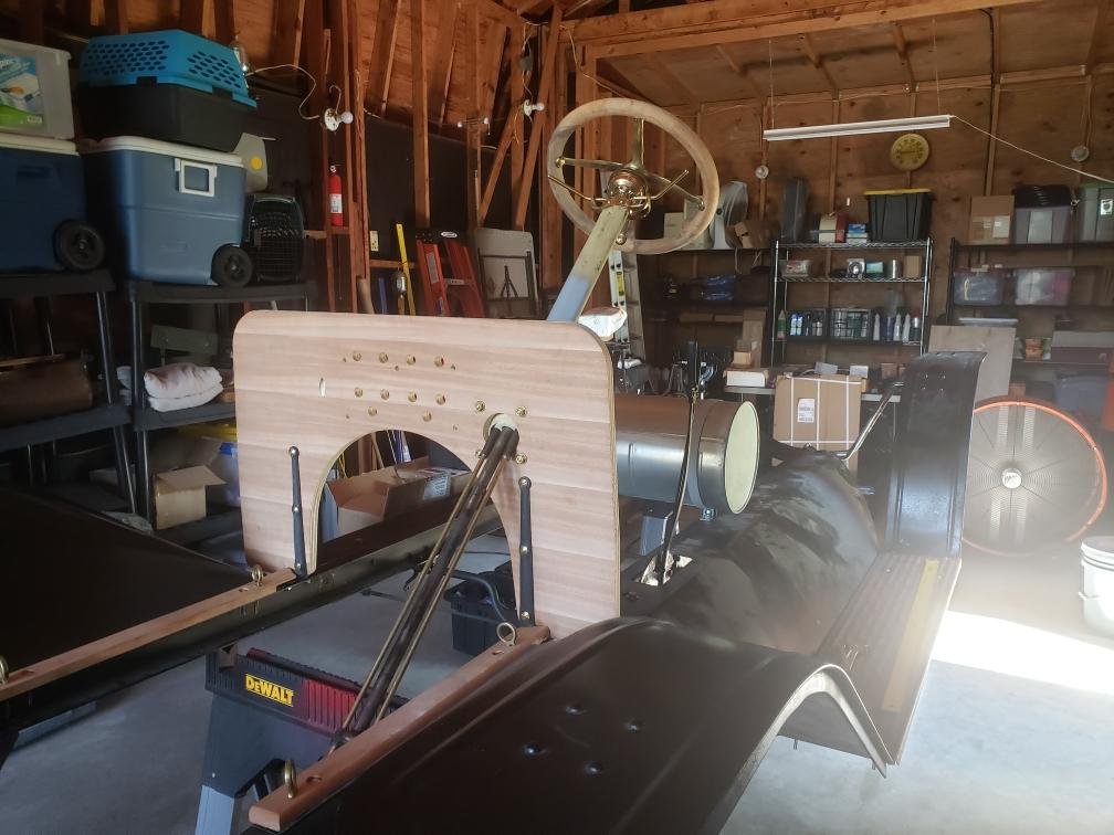 With all the craziness in the world this year, I felt like I needed a project to take my mind off COVID and politics. So, I decided (with my wife's blessing") to build a "1910" touring from scratch. It is a learning process, and I have had help from several forum-members along the way. The body is by Ray Wells and the upholstery (still in progress) is Ernie Romero. Both of these guys are true craftsmen. The green we chose is the same one that Kim Dobbins used on his Model B. It is a nice, rich and deep green. It truly looks almost black.