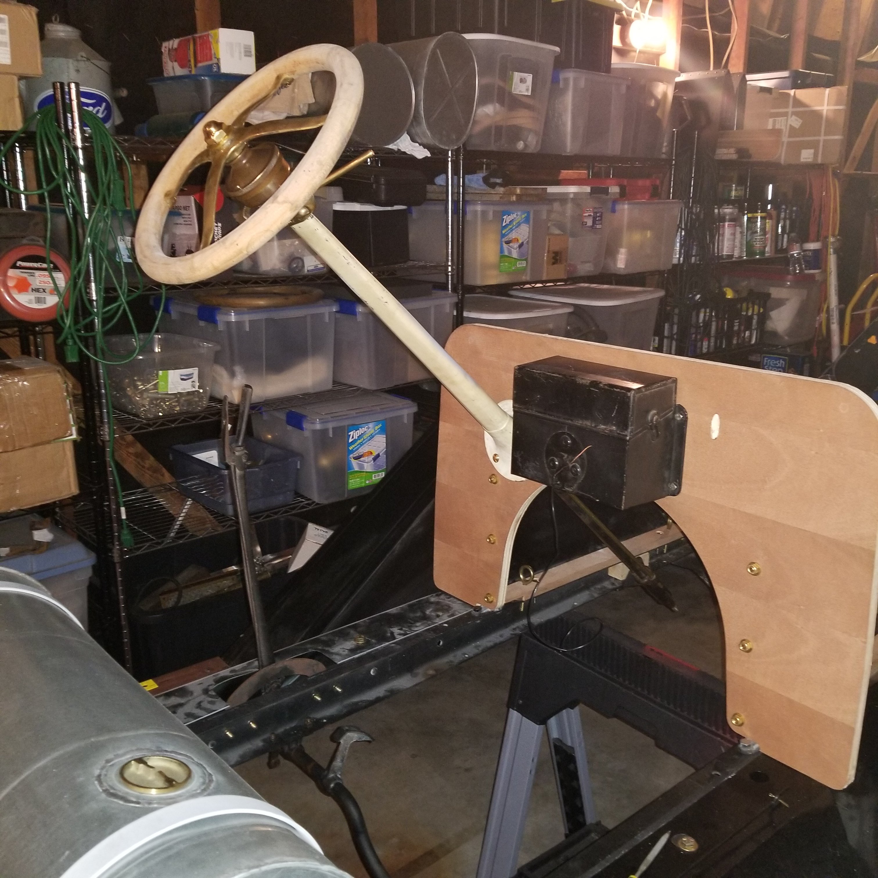 We purchased a number of 1909/10 parts (frame, fenders, brackets, radiator, windshield, etc.) from Arrdeen Vaughan and Russ Furstnow. Both have been a great help in obtaining parts and in sharing their knowledge. Ross Lilleker is helping me with the rest of the running gear, most of which will be from a 1915 car. I want to give a special shout-out to Hank Lee. I had a steep learning curve trying to build a "1910" steering column. Hank shared with me his knowledge (and tools) on riveting the steering box. Model T guys are a great bunch!!!
