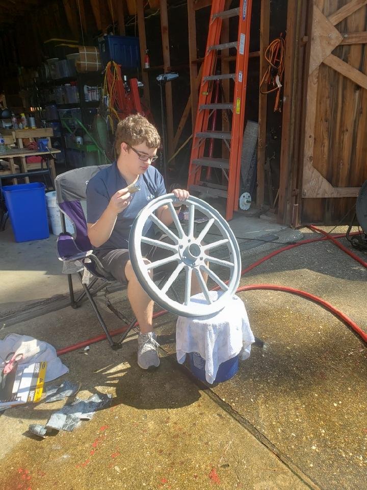 More pictures..the first one is my son wet sanding the Stutzman wheels