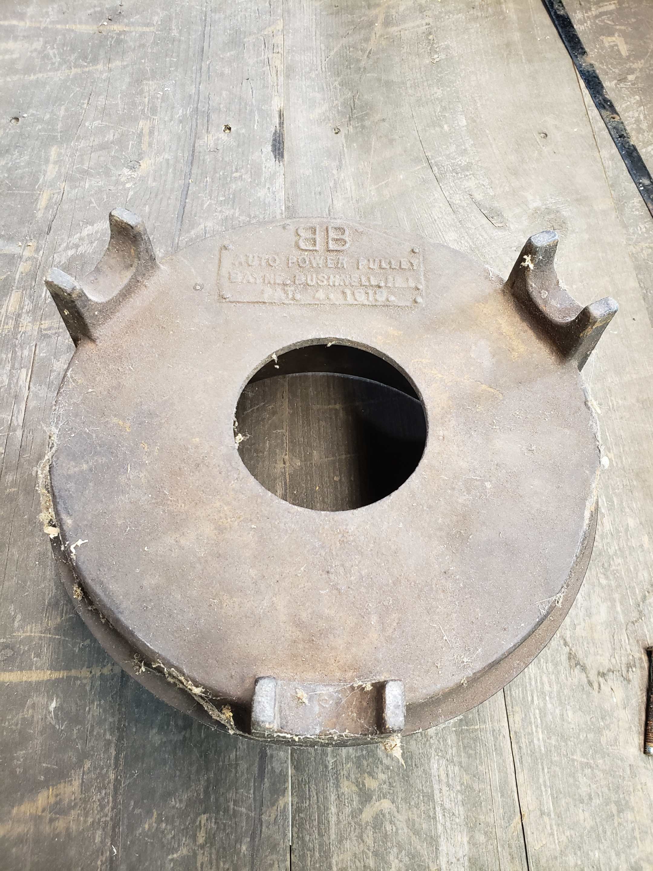This does a pretty good job of describing the adaptor flange. I've seen a couple of the pulleys but never the adaptor flange.