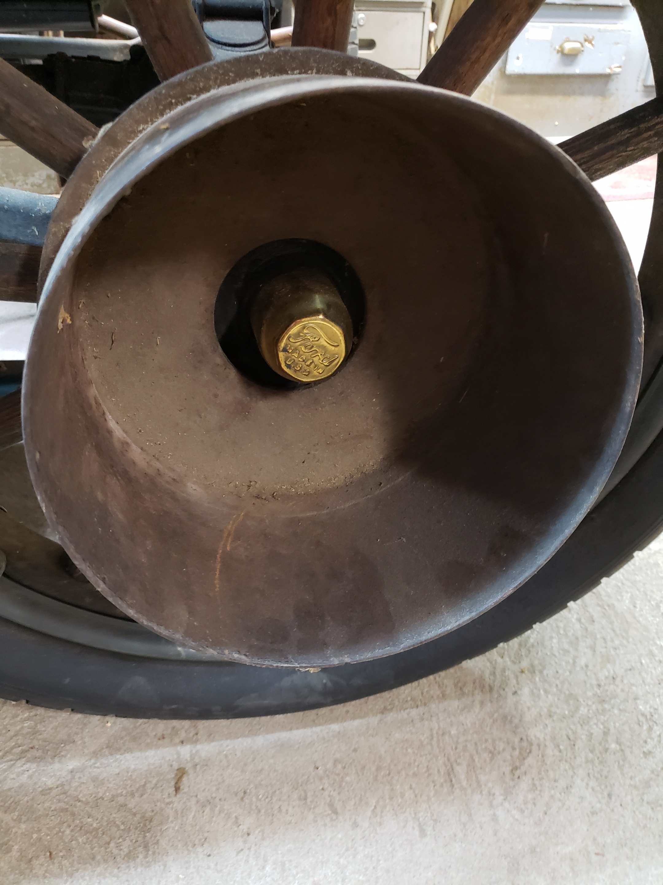 I know nothing about it other than it fits up to a T spoke wheel perfectly! I think its missing a retainer or knock off cap for the hub to hold it on. Maybe one of you accessory gurus have one or have seen one. Would be amazing to find the missing piece.