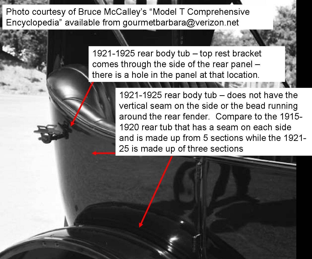 I like to say the rear tub changed during 1921 -- when I believe both the older 5 piece rear tub was replaced with the newer 3 piece rear tub. The 2 photos below show a 1919 5-piece rear seat section for a touring (used by permission of Model T Haven -- this one sold several years ago. Thank you Mark for letting us use those. See https://vintagecarsandparts.com/cars-pre/cars-pre-2 for other photos on his site. )