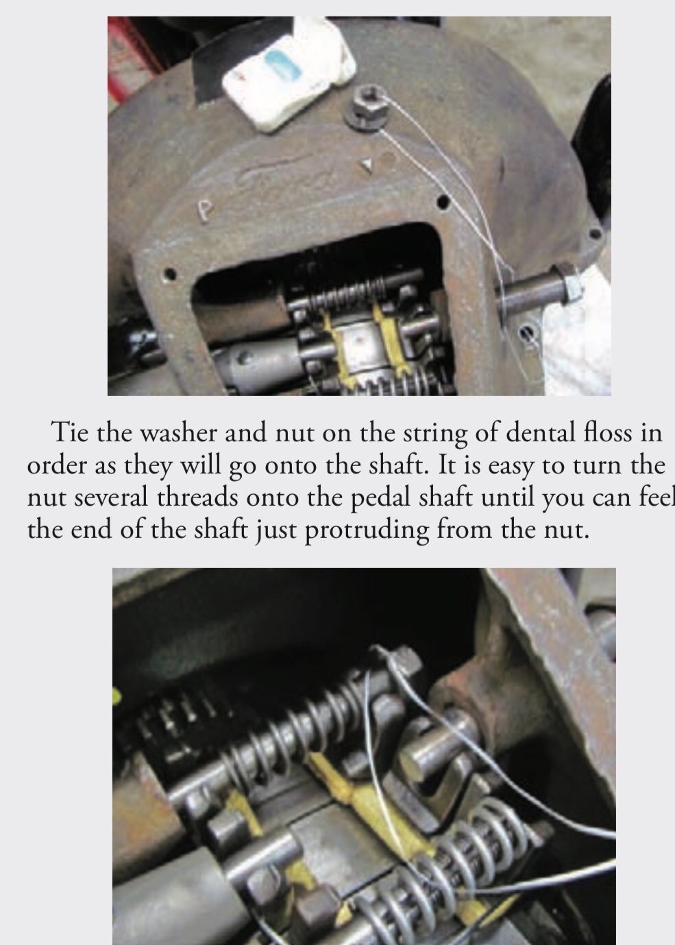 This includes removing the exhaust manifold, loosening the bolts below the UJ housing, nothing loose above the opening such as a key in the ignition and ANYTHING in the way. I also use the custom tool to hold the nut and washer holding the pedals to the bands and wire the bands together with something plastic.
