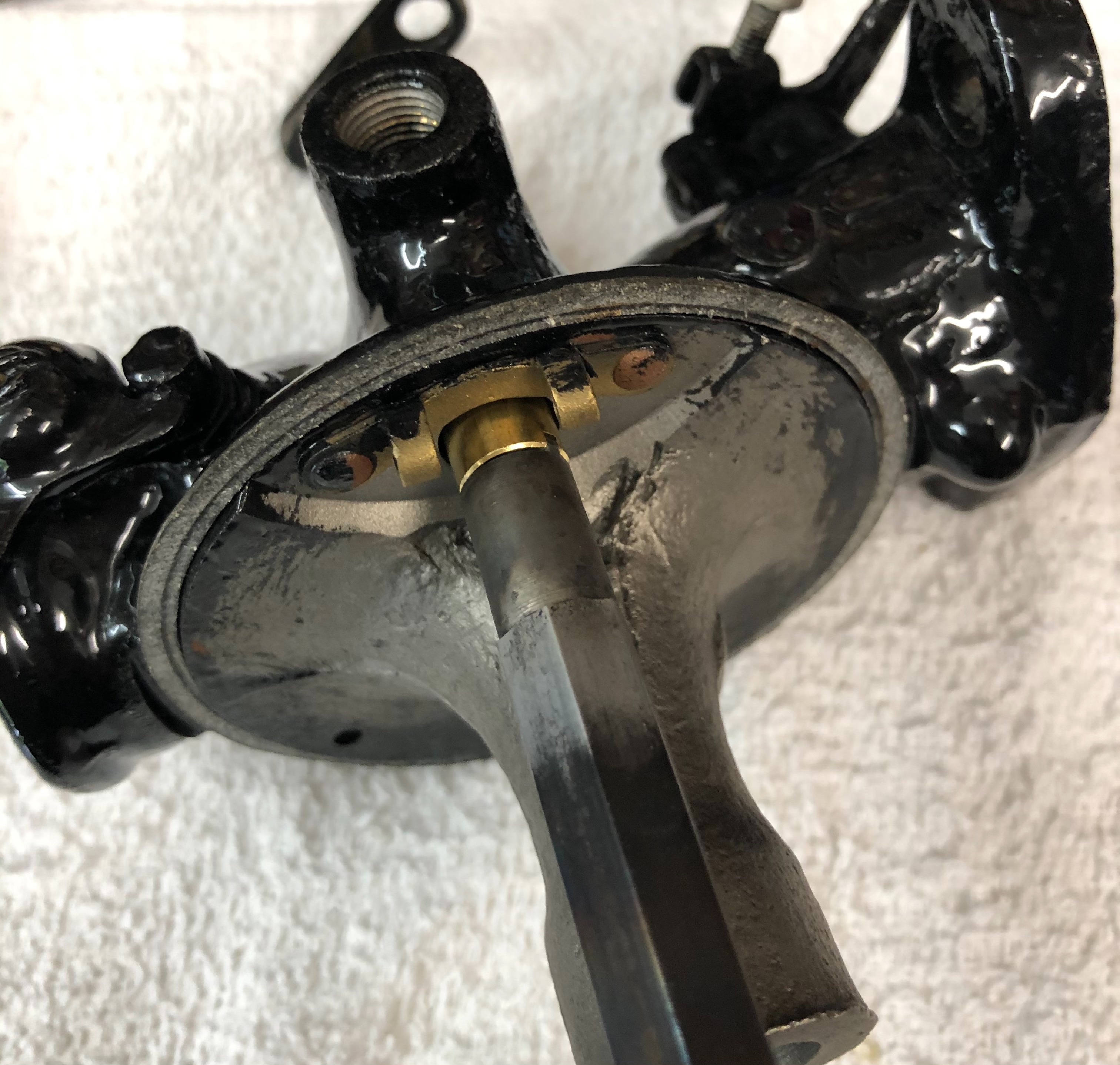 This carb was completely rebuilt by another, but came with a Grose valve, ball type, that IMO are worthless due to stopage and leakage.