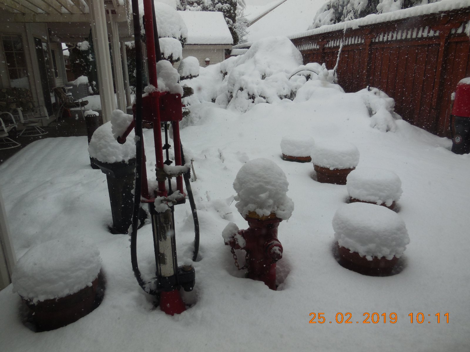 Three and a half feet of the stuff in the yard. Drifts against the fence reach the