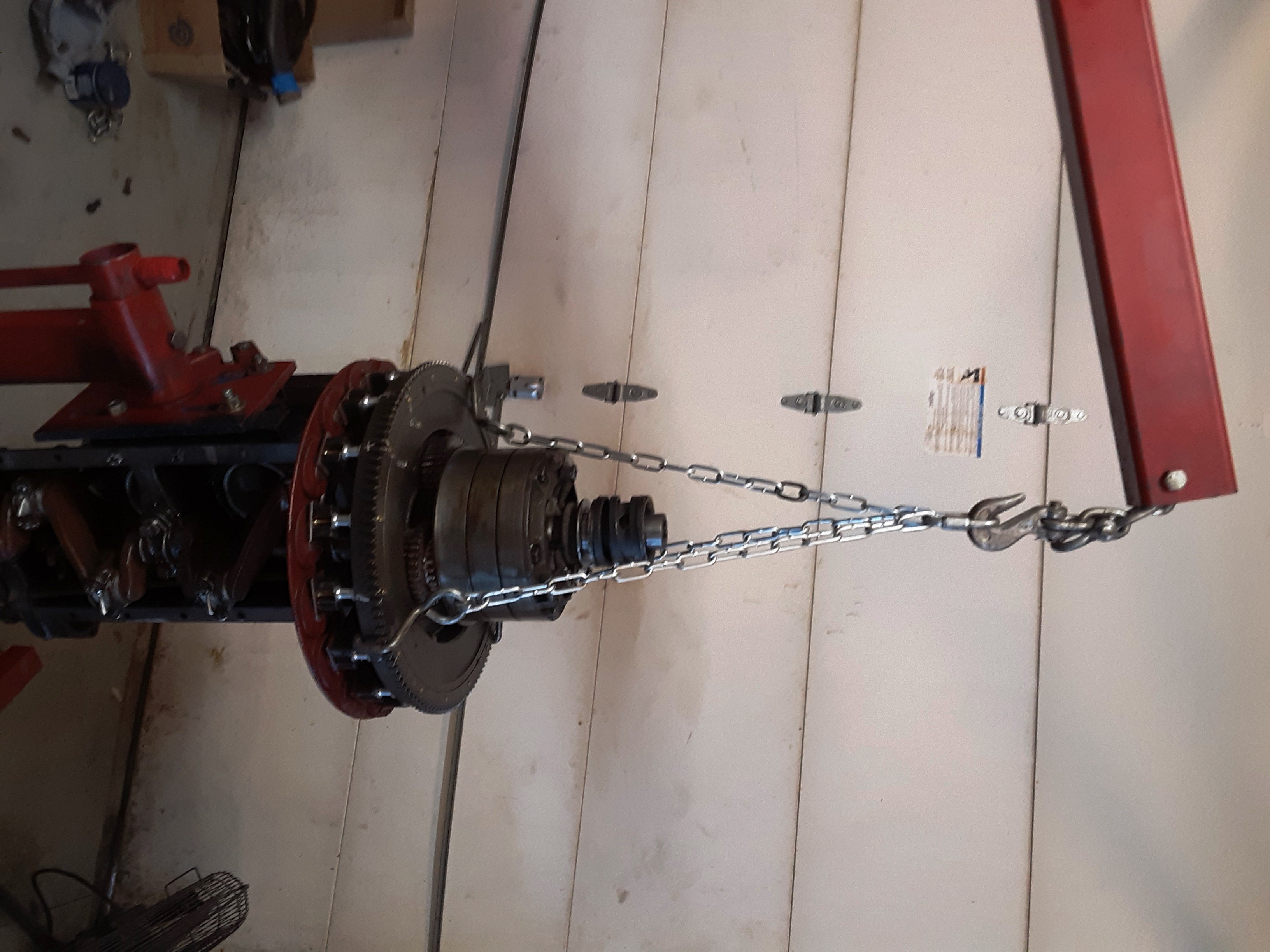 We manufacture the Model T 3-Point transmission sling in the attached picture, which works great with any shop crane/engine lift. You need a sling that will lift both the transmission and the flywheel as a single assembly, like ours does. If interested, PM me for price and ship dates. Lots sell out quickly when released.