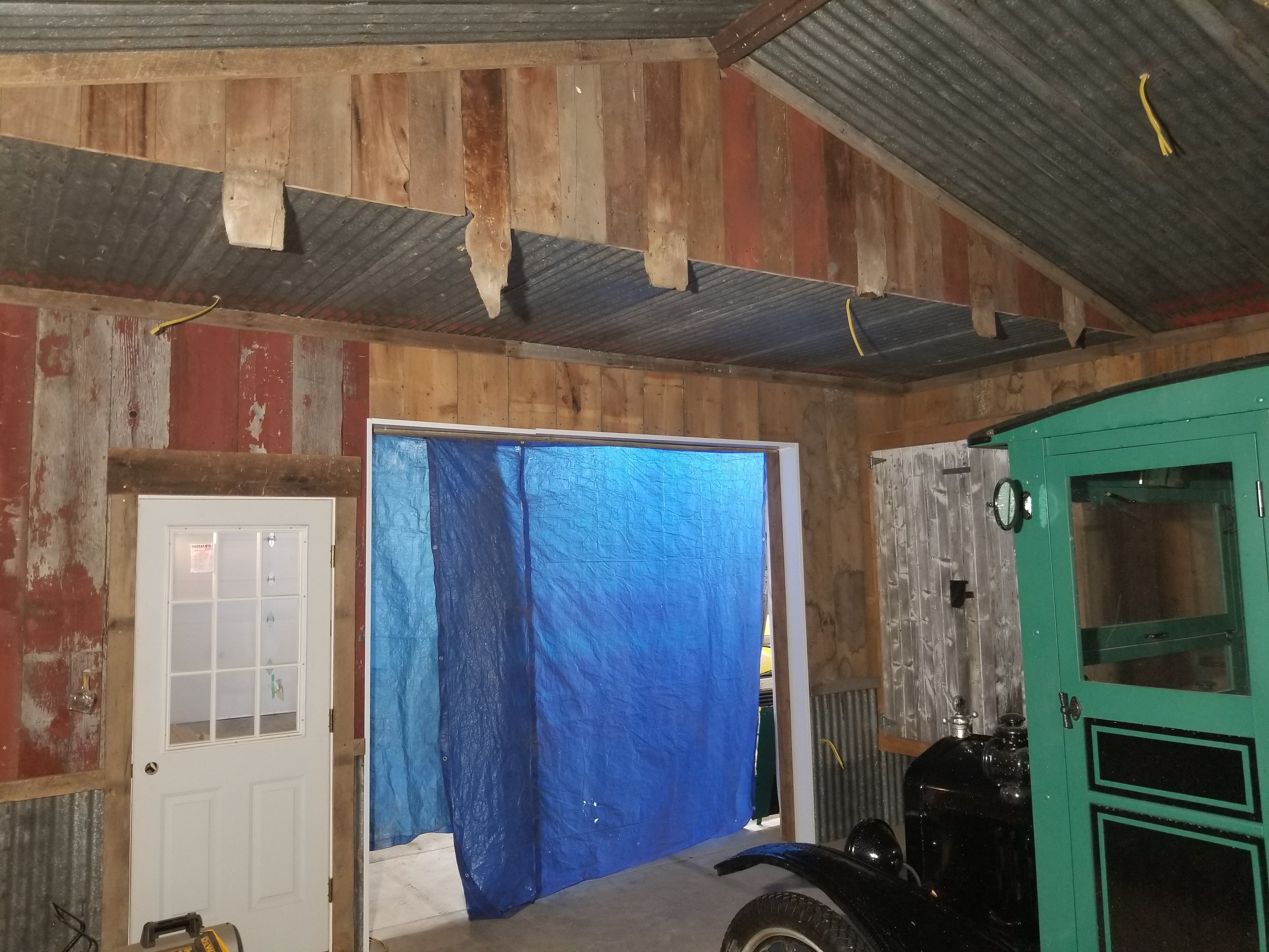 Thanks Allan, the metal on the ceiling was the old roof metal. Rusty side up and the large panels were exactly 10ft- 1in. Perfect length for new shop ceiling. Of course I planned it that way