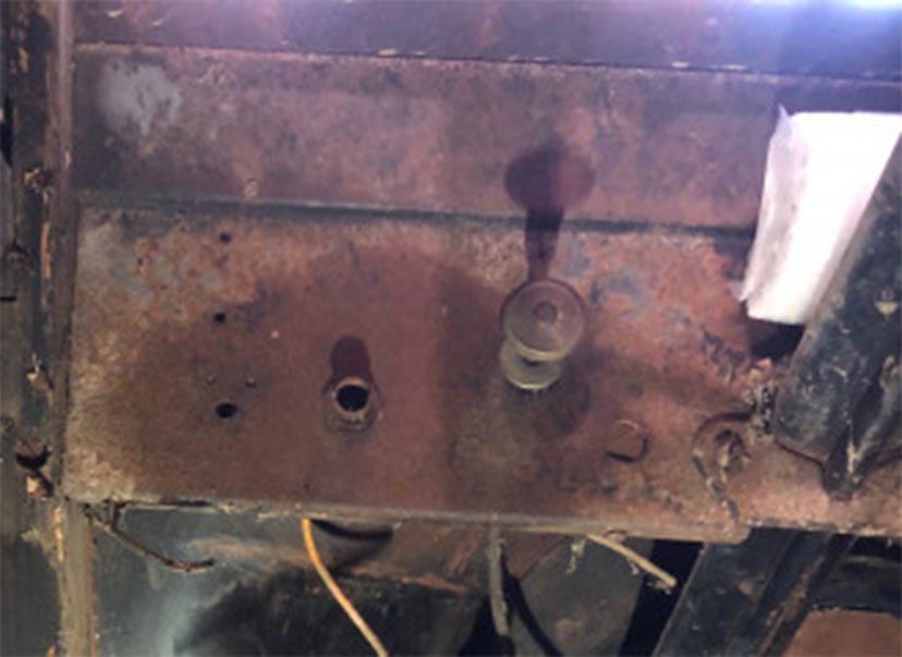 Dan Haynes is correct. This photo of Brett's shows the location of the steering column and the retaining plate.