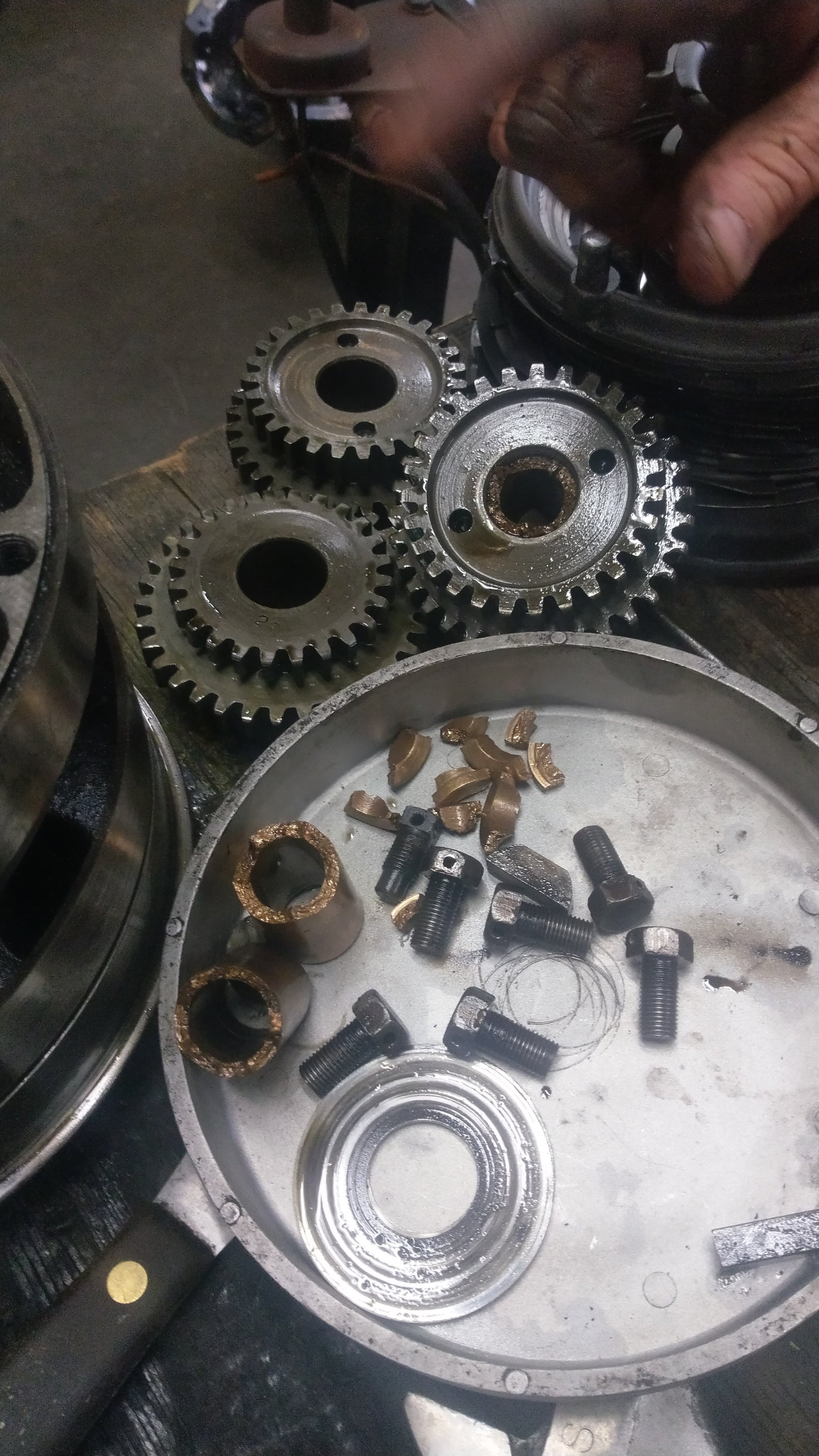 Agreed. They may also have been pressed in, in a manner that further exacerbated a poor choice of material. If the bushings were pressed in using a tool with a fairly small step with which to engage the face of the flange, after the bushing was seated against the gear face, any additional "push" would have had the effect of trying to push the flange off of the bushing. At the very least, there would have been residual tension between the flange and the bushing body that, over time & use, caused the flange to separate from a brittle Oilite bushing. The proper way to press the bushing in would have been to use a tool that covers the whole face of the bushing flange. Naturally, all of this is speculation, but it seems to support the situation now at hand.