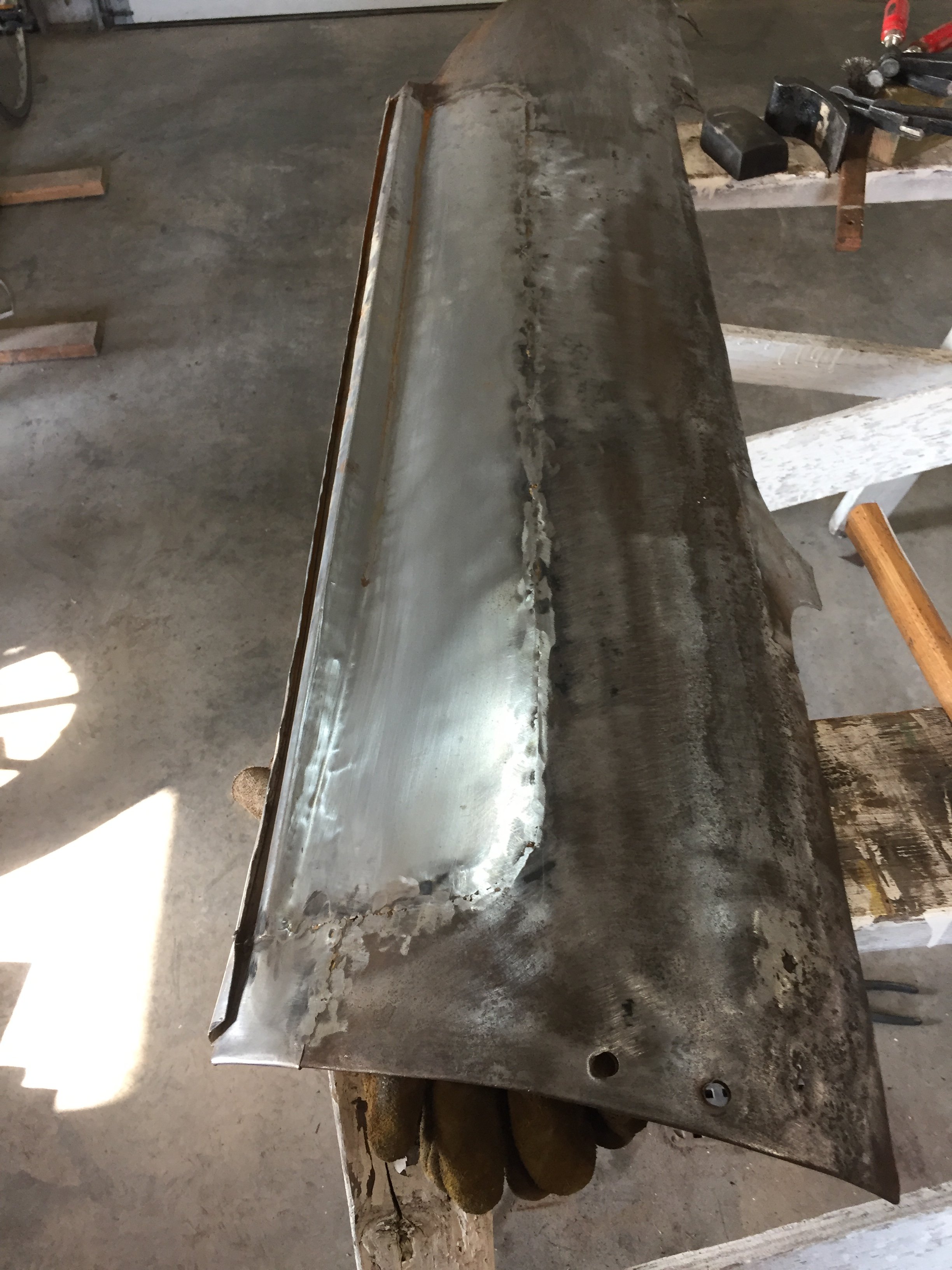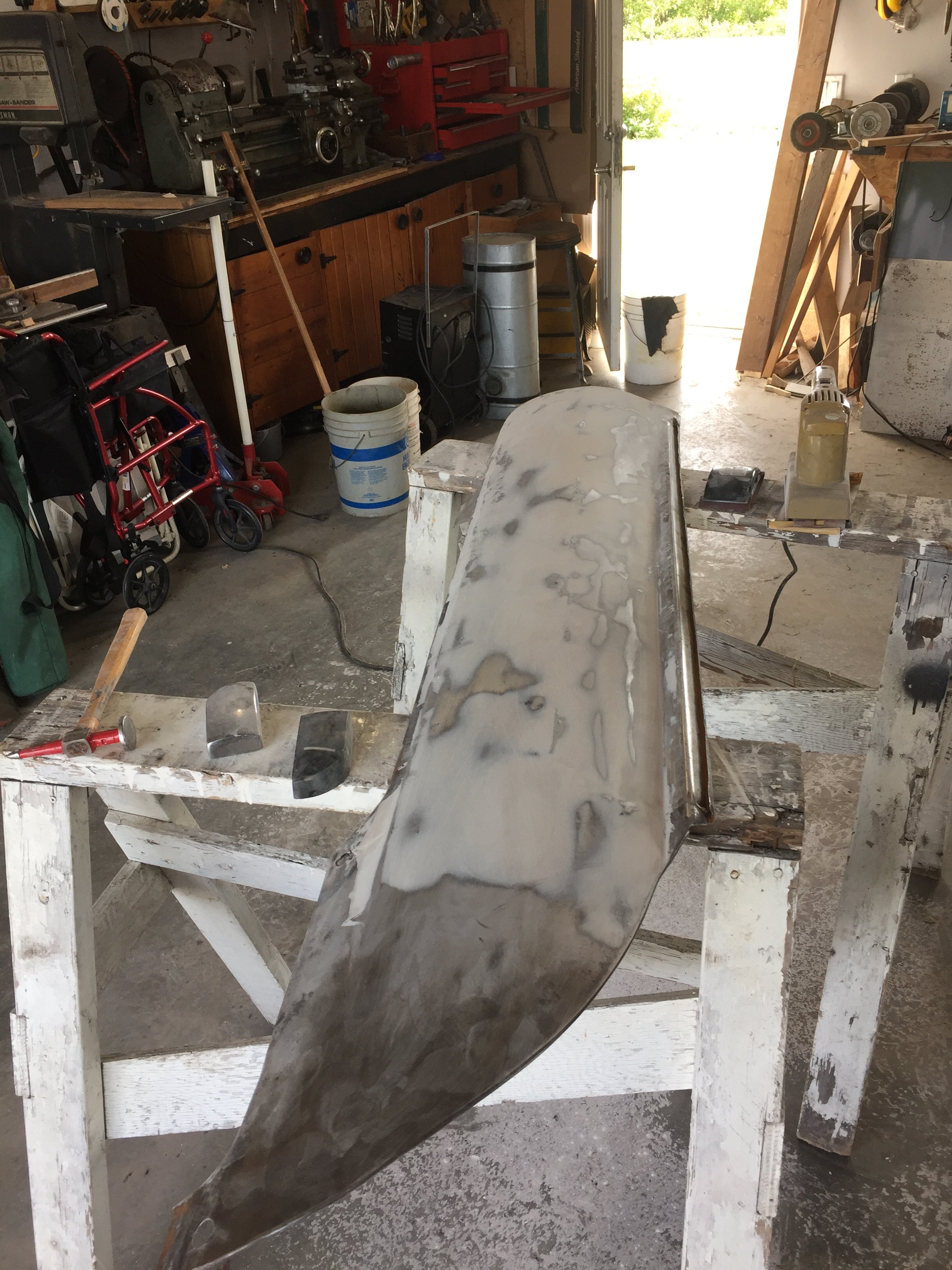 I enjoy the metal working part of it way more than the filler and paint part. Luckily the picture doesn't show the sanding marks. It's a 20 foot paint job.
