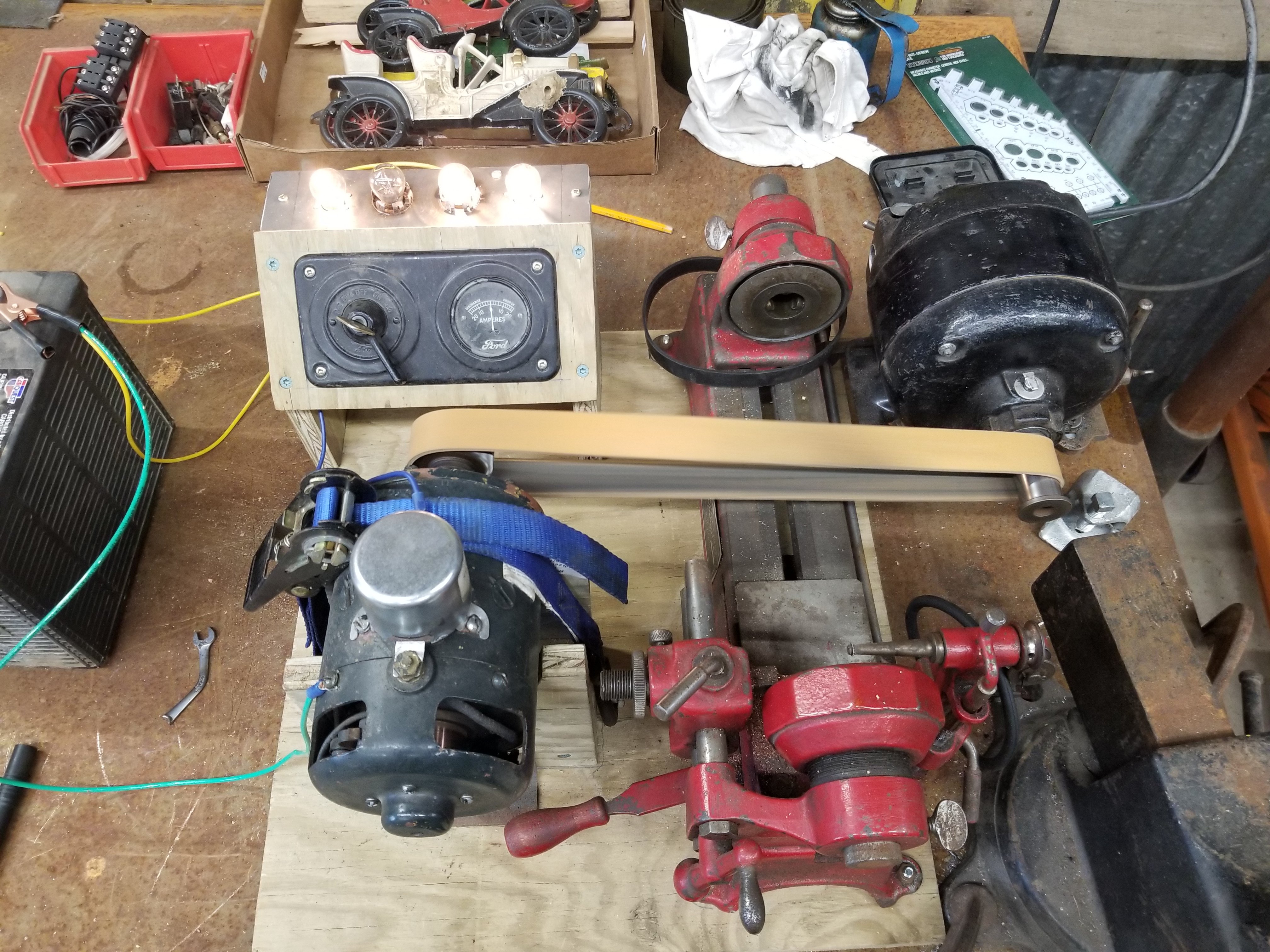 Enjoying a little time in the shop while waiting on material for two jobs at work. The generator on the 27 tudor Im working on was not working. While I was at it, I rebuilt two other generators for myself. I picked up a Tru-cut armature lathe and a growler but needed a test stand. I borrowed some ideas on the forum and got creative.