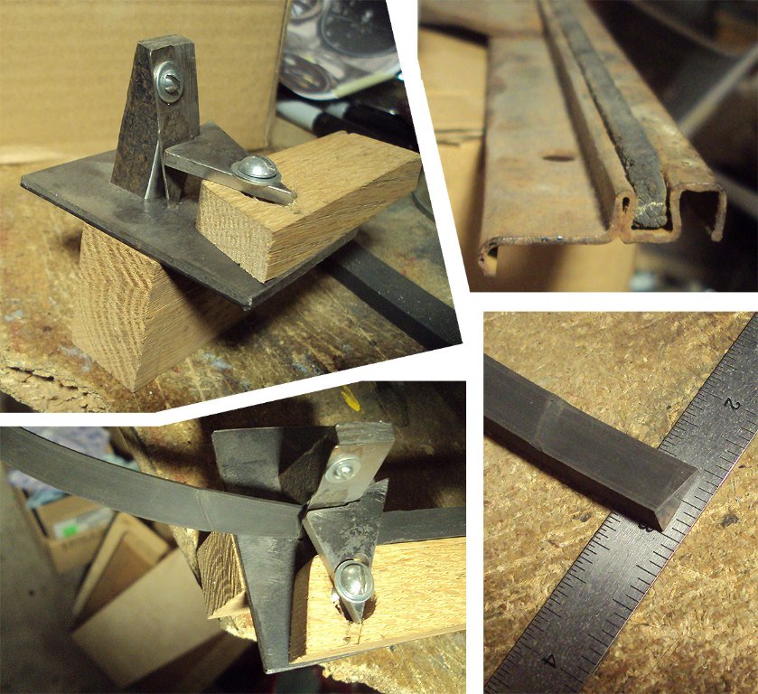 Not willing to take a chance I made my own from some rectangular rubber strip. I made a jig to cut the strip to a triangular shape by pulling it past an exacto blade screwed to a chunk of steel. I made the strips 3/16" x just less than 1/2" which was the thickness of the strip I was cutting it from. It is a little tough to get started. It has to be pulled through in one long consistent draw. Any hesitation or stopping with leave an irregular mark which can be seen as a flaw in the lower photos. while perhaps not what the original was it works well.
