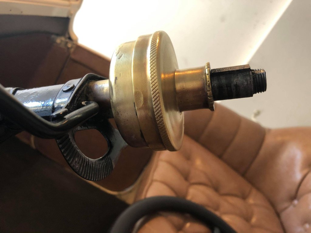 Yes, the 1915 and earlier posts have two keys. I don't know when the change to a single key was made. The horn button introduced in 1915 was held on top of the column by two screws. 1915 gear case and levers were brass plated.