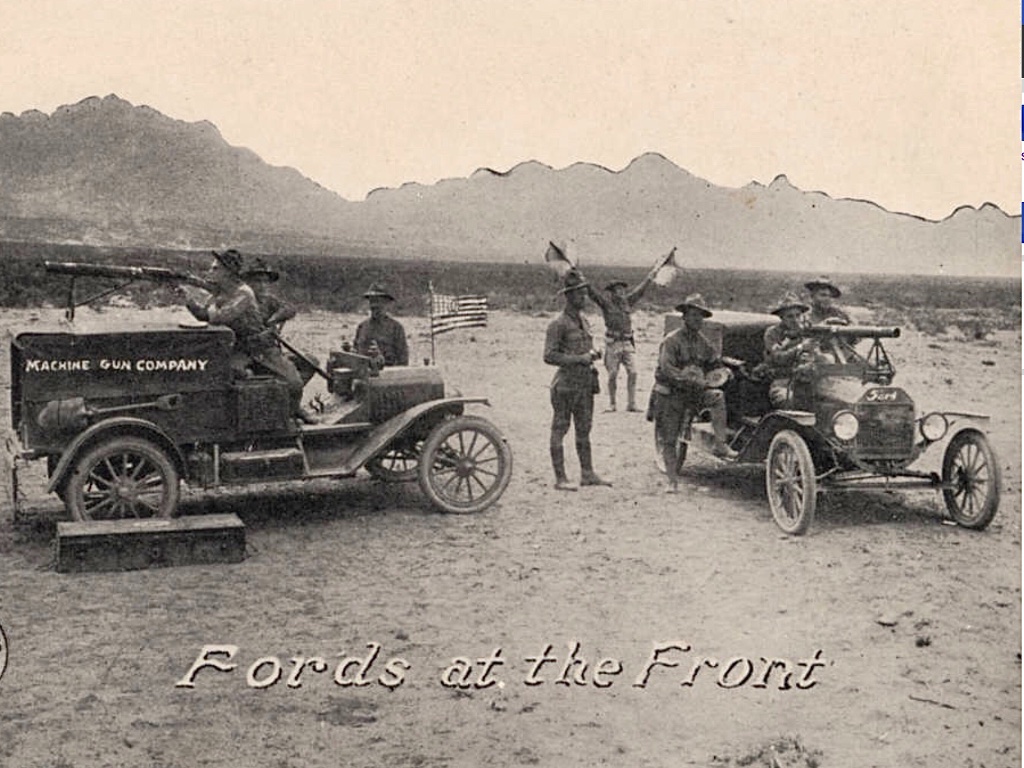 The third photo from the bottom looks to be taken during the 1916 campaign to capture Pancho Villa in Mexico. George Patton is the innovative officer who mounted machine guns on Model T’s and led raids into Mexico. He never caught Pancho Villa, but he did return with several of Villa’s men dead and draped across the hoods of the Model T’s. Jim Patrick