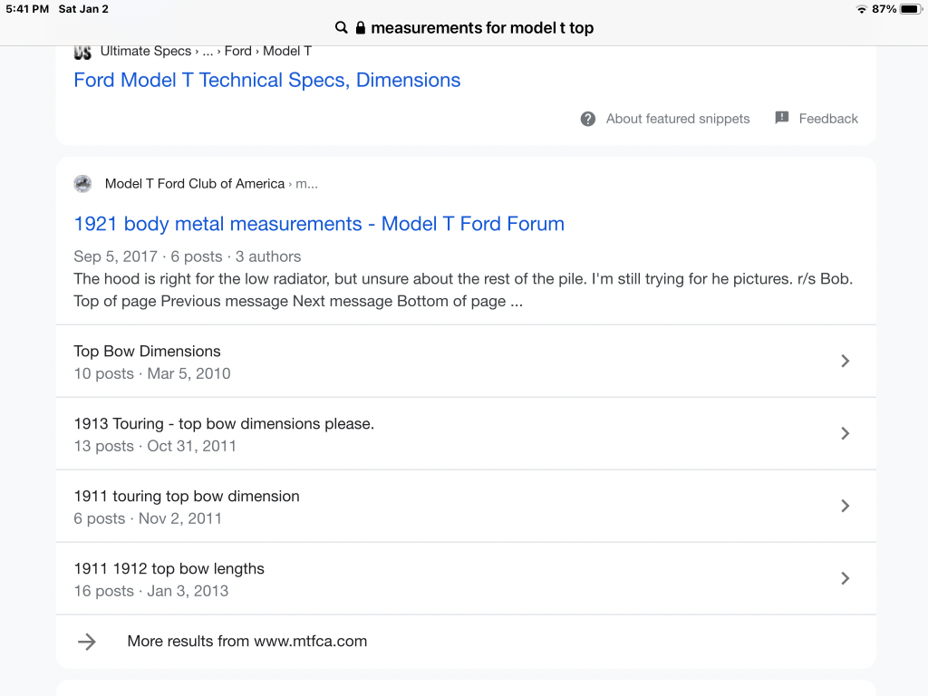 I was offered a free top, made by someone who could get the materials and make it themselves, but the catch was that I had to supply the pattern in either detailed measurements or an old top I could loan him as a template. Does anyone have a diagram with measurements for a 27 touring top, or maybe someone has an old top I could borrow for a template?