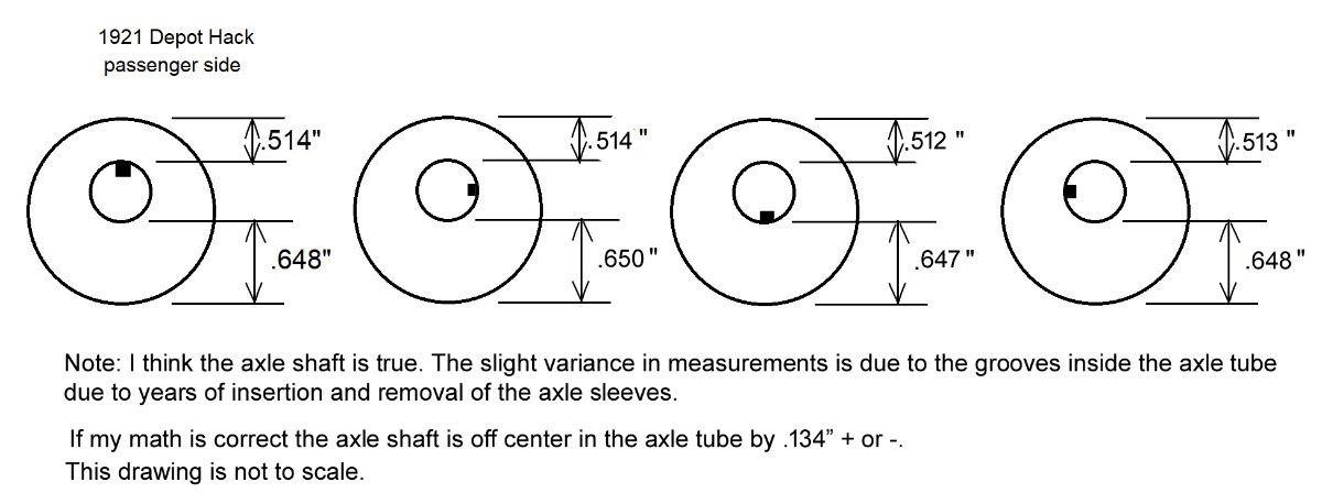 Dick- initially, my problem was grease slinging out of the hub and onto my rt rear tire & brake disc, so I pulled the hub to check it out. That's when I noticed the axle shaft was not centered in the axle tube like it normally is. That's when I posted my thread on the forum. Now, let me say this- "it ain't my first rodeo", and I know that any rear axle repairs are normally done with the axle on the bench in a vertical position. This way, gravity will not play as much of a role as having the car on a jack stand. I also have disassembled many Model T axles and have never noticed the shaft being visibly off-center in the tube. That is why I asked for opinions on this particular problem.