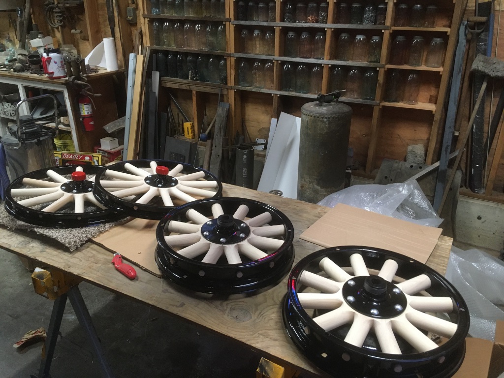 I hate styrofoam, but now I know how he packs them and if I need to send him more wheels I know how he likes them packed. The wheels are beautiful. I do not think I even need to sand them, they are so smooth. I will have to seal and paint them black.