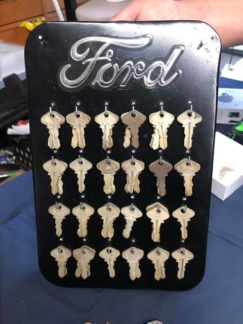 Identical font style on Ford brand and Clum brand key rack, the K is the same and the E with short middle leg. I fathom both were made by Clum, and supplied to Ford. We know Ford used suppliers for the switch and keys, makes sense a key supplier manufactured the racks for Ford.