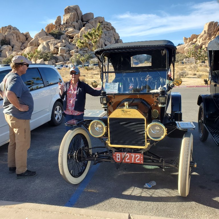 I brought the '22 Ford touring my dad bought in 1939 for 10 bucks. I have never driven it that far in one day and it was a blast! The Mojave Desert is an amazing place and the weather couldn't have been nicer. I had to double back and help my nephew fix a flat on his '15 T , so I never saw the tour again till we got back to Desert Hot Springs. Here are a few photos from the journey.