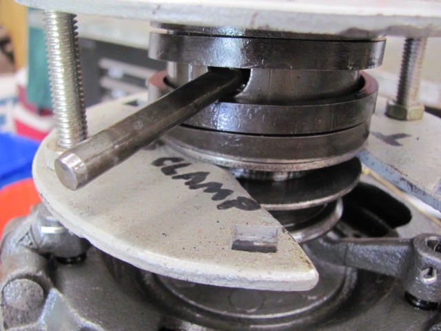 2nd. After I compress the clutch spring the pin should rest in a small detent. However I see two places it has been resting. so should it go like this? Lined up to the hole.