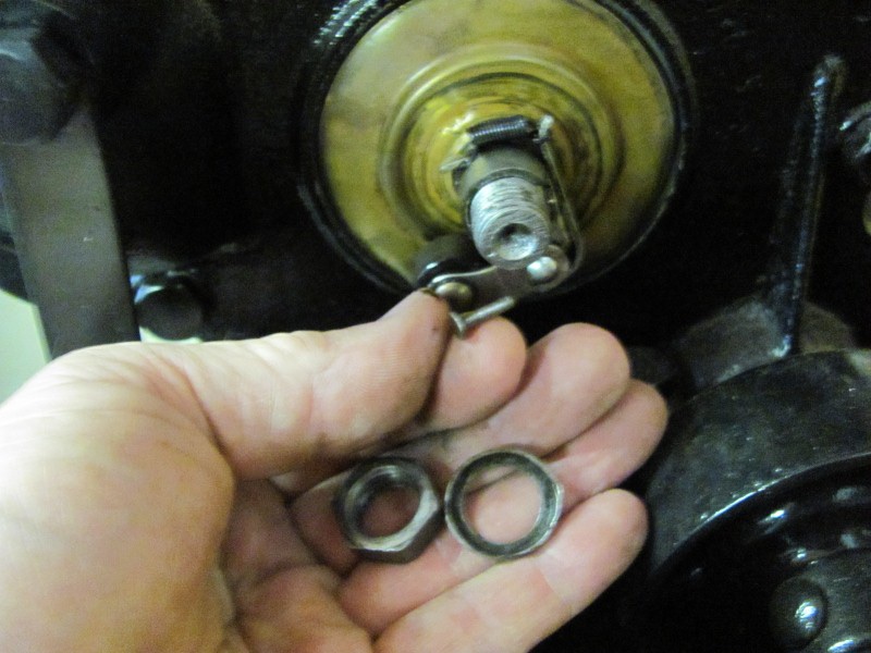 What I am seeing may have been a shim to move the rotor/brush out. There would not be any brass piece like that in that location. When the original felt seal was installed, there was a brass shield held in place by the timer, the shield center hole went around the large smooth part of the cam gear retaining nut, not between it and rotor. What I am seeing is not part of the cap that holds the rotor/brush pin in place.