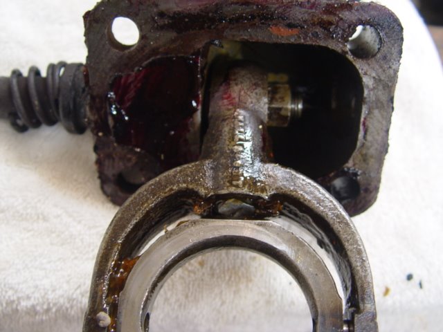 The shiftlock assembly on my TT will not keep the Ruckstell in underdrive. When driving in Ruckstell underdrive the Ruckstell slips into neutral. When I removed the shiftlock assembly I found that the piece with the chisel edge that is supposed to be on one side or the other of the yoke is backed out and pushed into the piece it is supposed to be on one side or the other of. (Sorry, I don't know the correct terminology for all these parts) If you look at the pictures I think you can see the problem.