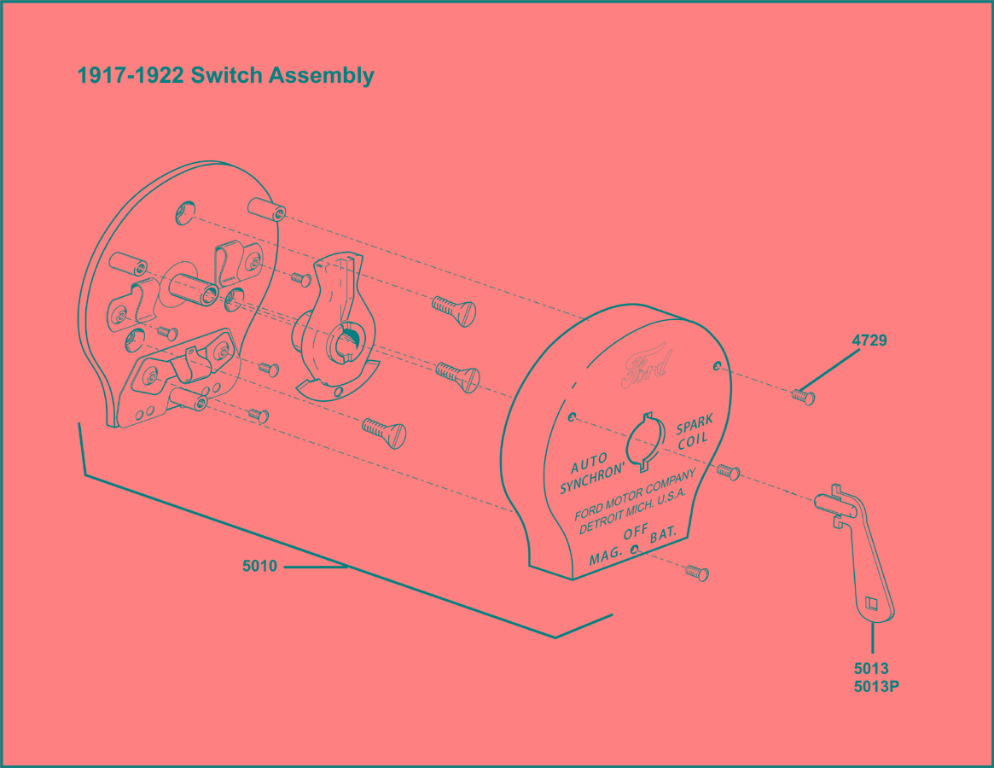 The internals of the switch send the electricity to the coil box. Inside the switch functions just like the coil box mounted switch, the headlight function is inside the switch but a separate part. The earlier cars 1919-21 still used the coil box mounted switch with a combination horn button/light switch on the steering column with the dimmer coil on the dash, later the dimmer was placed where the ammeter goes. I had a starter coilbox and temporarily ran a wire from my mag to a house light switch (no headlights) until I found a combo switch for the column and a coil box with a switch on the front.