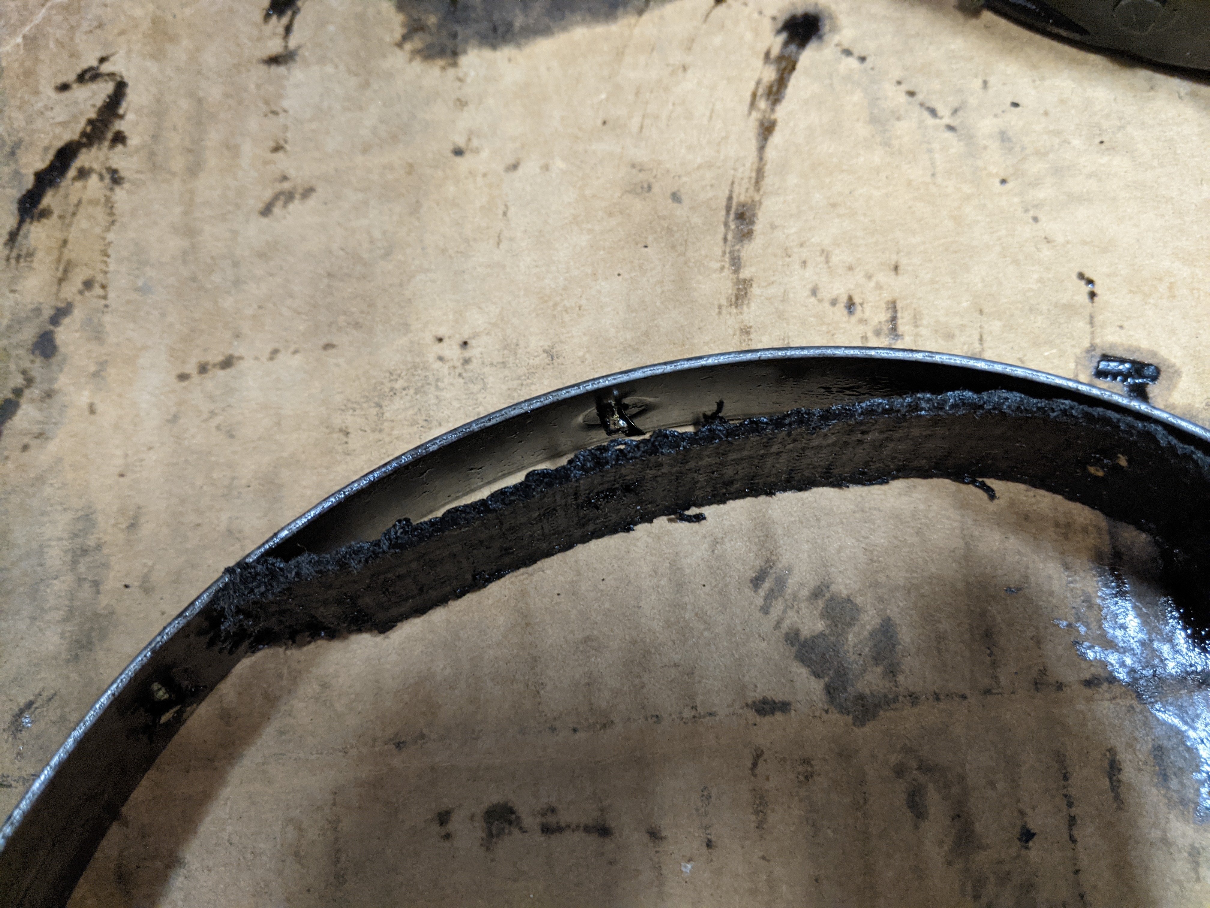 Band lining torn up indicates a cracked or broken drum, so you will probably need to replace at least one of those. An original drum may be OK for a car that isn't driven much, but if you intend to use the car a lot it's probably a good investment to get one of Dave Nolting's new drums. Many original hundred-year-old drums have cracks, sometimes unseen, that can only get worse until the drum goes to pieces. VOE