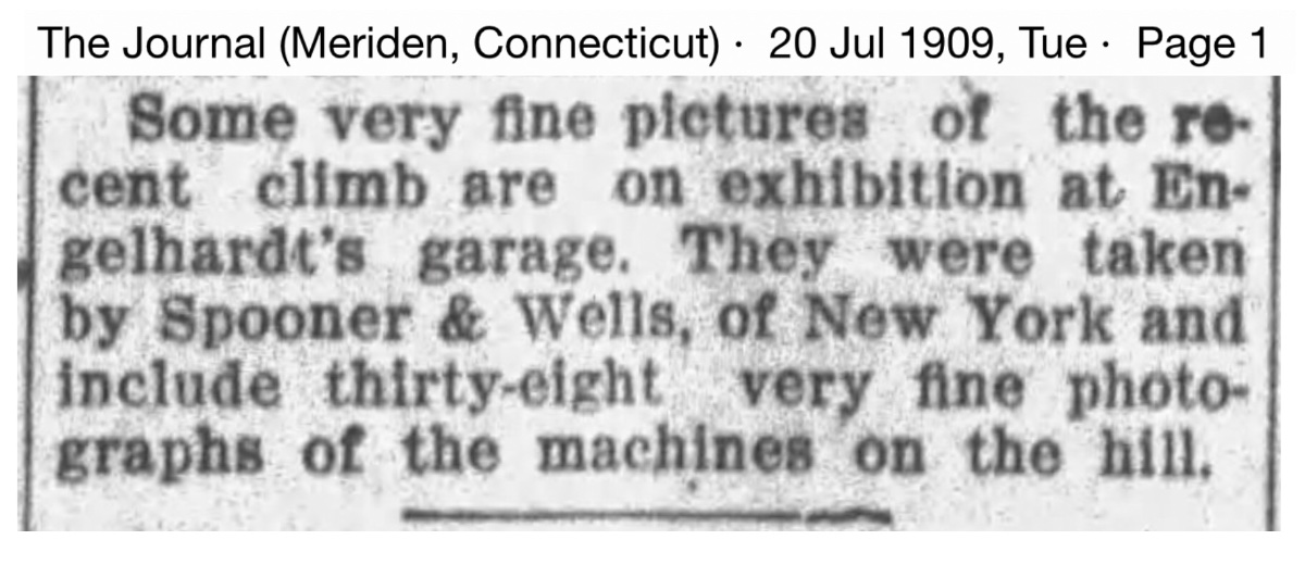 We're fortunate to have some photos from the hill climb still remain today. The reason for this may be that Spooner and Wells, period photographers, were at the event taking photos: