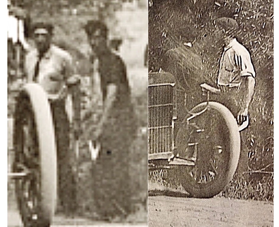 Then, a side by side of the a younger Englehart in the parade car, with a closeup from what may be him driving the Model K in 1909: