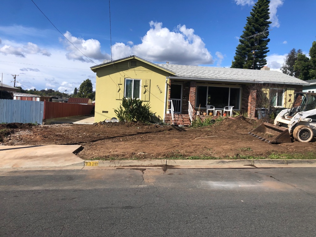 I’m on my way to Chickasha but was surprised by the amount of snow between Descanso and Jacumba. We had to follow a CHP Officer at 35mph over Interstate 8. This the truck loaded with stuff. The second picture is the mess of the front yard since we dug up most of the driveway prior to our planned improvements.