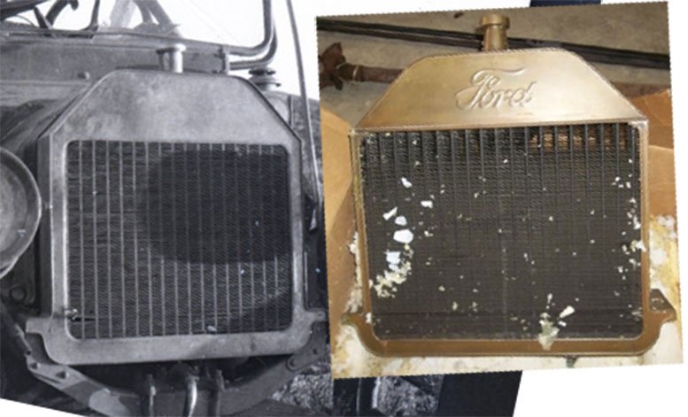 I have a set of 100 negatives taken from an unknown tour of western US. Negatives number 59 and 60 are of a wrtecked 1911 Model T Ford. I beleive the tour took place in 1912. The radiator does not have the Ford name and the filler neck looks different. I beleive it is a heavy duty radiator.