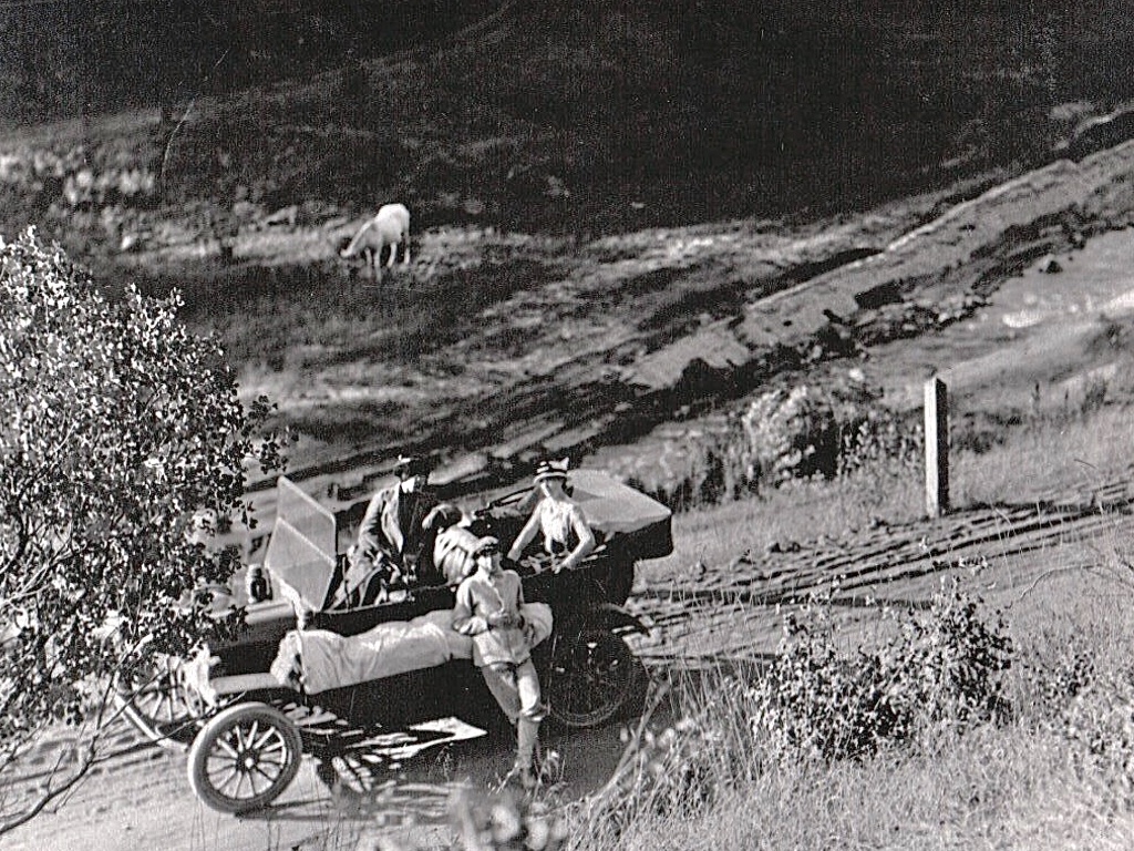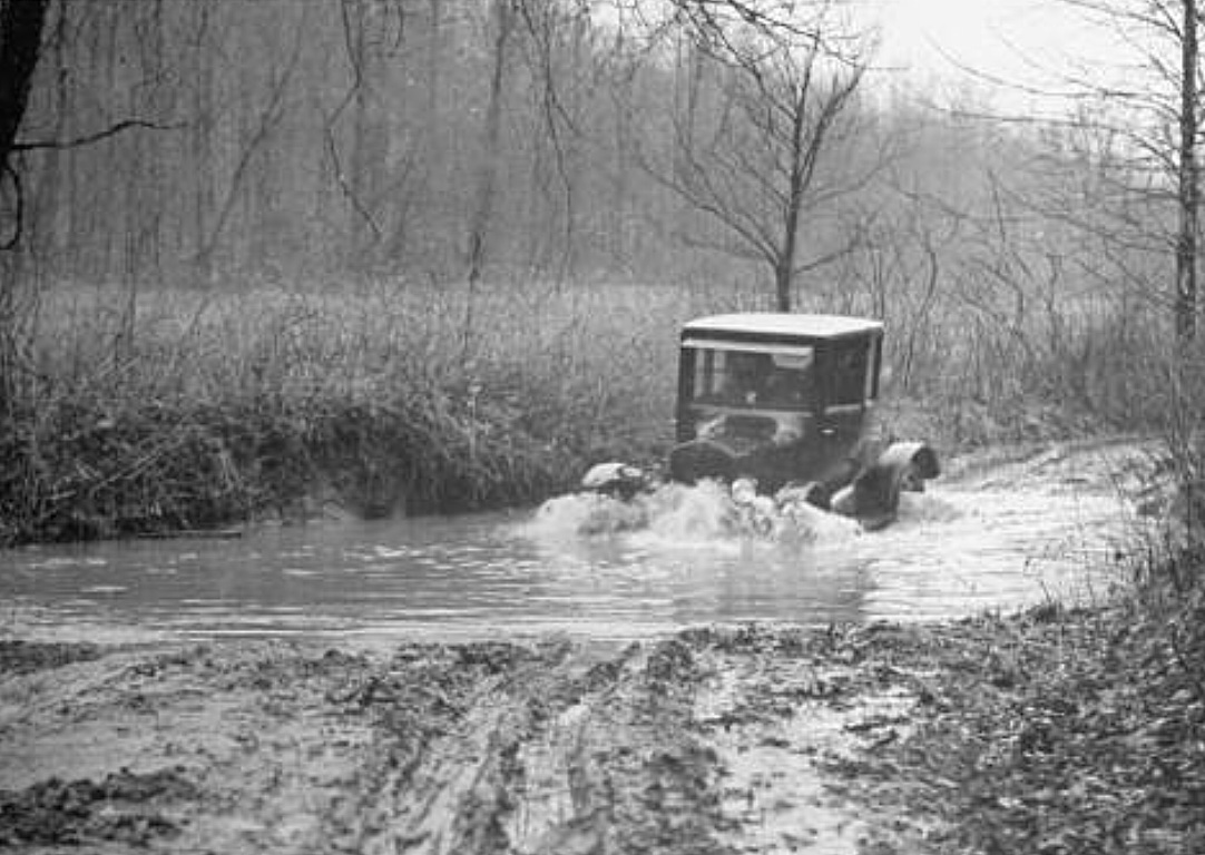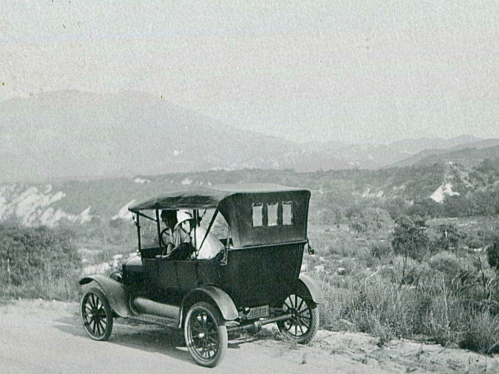 EDIT: After a little searching it appears the photographs depict scenes from the UK (via the National Motor Museum), which explains the RHD. The car is described as a 1921 Model T, the photograph with trees apparently taken in 1924. No further data on the other photograph, but the car looks a little newer?