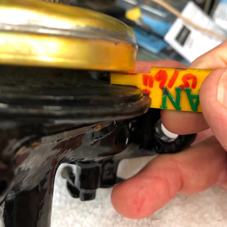 Dan, it looks like your gauge is upside down. Square side should seat against the flange and round side should face the float. The way you have it, there appears to be a gap under the gage on the flange side, which will make the gap wider than 15/64. Jim Patrick