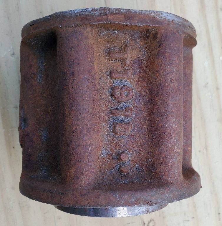It has the Patd cast in one side on the ball end. The thick brazed grease cup flange.