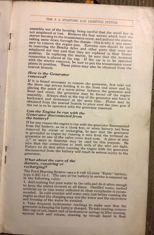 I think the rarity must be accounted for, because of the advice that if there is trouble with either unit, they should be removed and sent back to the factory. I'm sure they were replaced with the later style units that everyone has, so the number of very early starters and generators that are left out in the general population must be VERY small. Probably the best possibility would be a 1919 car that was parked within 5 years or so of being purchased, before either the starter or generator had the chance to develop a problem and be subject to replacement.