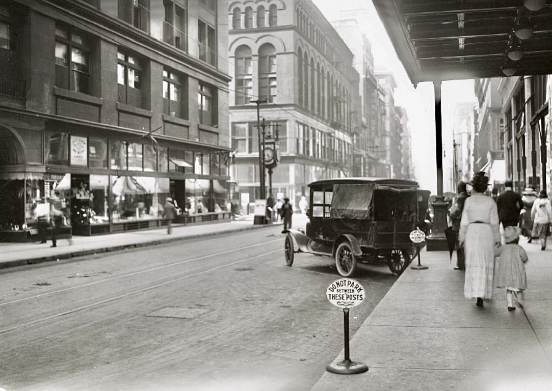 Interesting. My first memories took place in the late 1930's. By then the "New"cars had a very different look from the old cars. There were still many Model T's and other older cars running around. You would even see a few horse pulled wagons. The large city downtown areas looked very much the same as the ones in these pictures except there were some newer cars parked. Because of the depression followed by the war, there were many older cars still on the road until about the late 1940's.