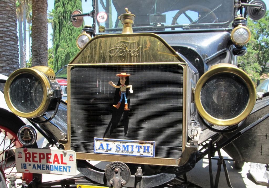 Ten years later Woody rides inside the car on the APCO steering column brace. The back story behind Woody is that I literally stumbled upon him in a parking lot getting out of our 15 Roadster. It was on the first trip to the grocery store in our then new to us T. I got out of the car and immediately stepped square on Woody laying in the parking lot. I twisted my ankle stepping on him and from that point on he has ridden with me in the T everywhere I go. In the beginning he rode on the radiator (As in the photo) Later on I invited him into the car on the steering brace. As Paul Harvey would say "And that's the rest of the story! "