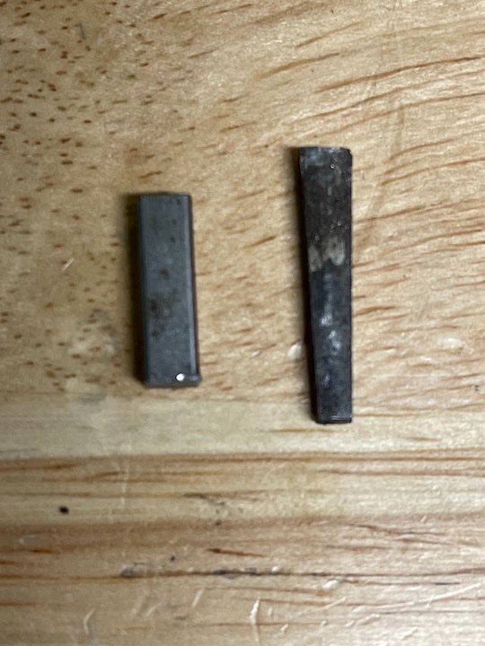 That didnt sound right, So i checked stock. Key is .1875" square X .90 +- long. Takes a tapping to seat it in steering shaft.
