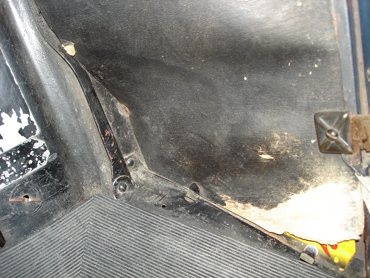 Of course the two outer stanchion bolts are carriage head, with washer and small lock washer and hex head nut inside, both clamp over the upper kick panel cardboard, to keep it in place.