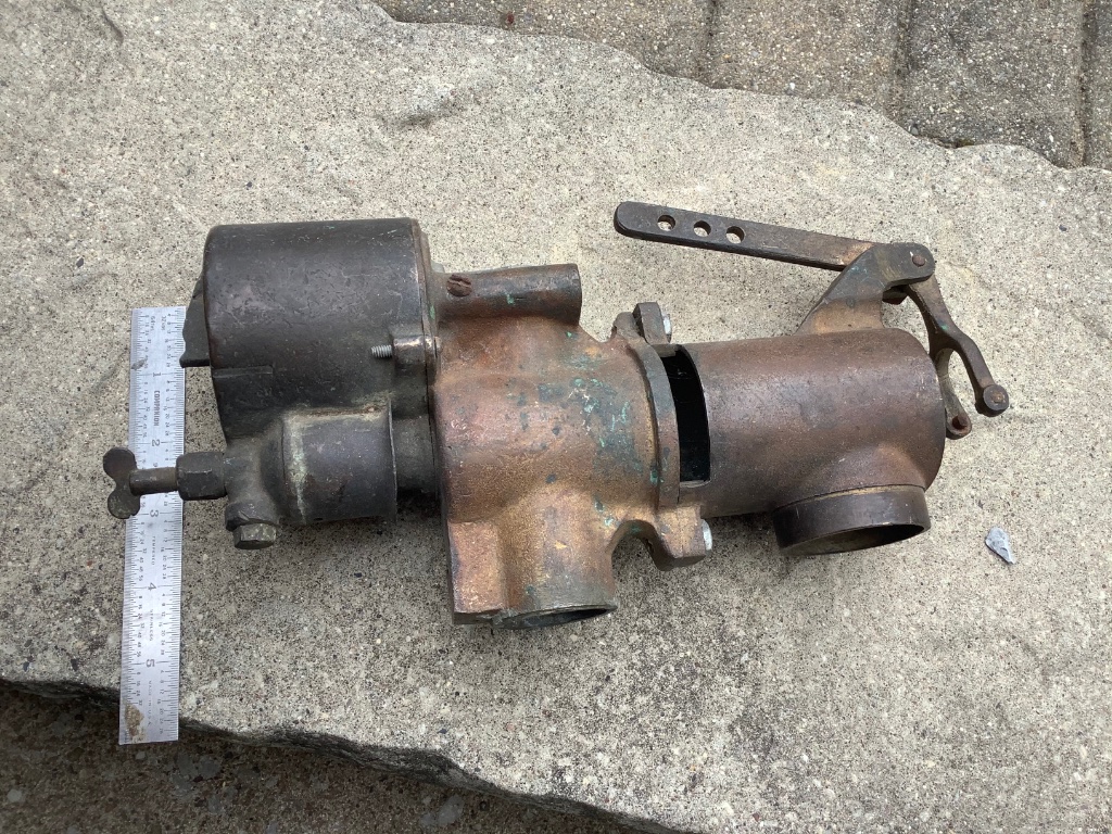 Thanks all. It’s encouraging another has been spotted. That indicates it likely not a one-off. Perry keet, examining it closer tells me these parts have always been together, but possibly something else missing. I believe it’s oriented this way, because that is a float with a possible drain valve wing nut at the bottom. It appears it would drain out the little overflow fountain. To me, very unusual that all these nice castings would have no numbers, mold marks, logo, nuthin! It takes some close looking, but I did find a 4 digit serial number, very small and hand stamped. The two side openings, 180degrees apart, show solder tinning. At first I thought maybe pipe(s) had been soldered in place, but no, some rings have been soldered in place, one to change the diameter and the other to cover up some machined holes. Pretty sure the top lever would control a barrel up and down , possibly to change air intake. Feel free to share pics anywhere else, I have trouble posting stuff on smokestack and others.