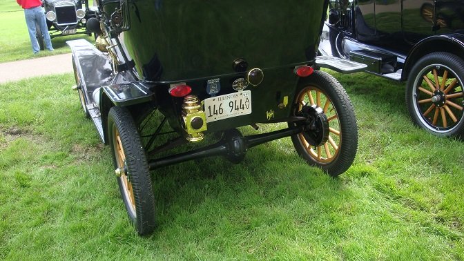This is something I have struggled with myself. If the tail lights are too unobtrusive they somewhat defeat the purpose. I have done 3 iterations of tail lights myself, which I will share in a moment. For my 1915 roadster, I use electrified side lights as the front turn signals. While I have LED bulbs in the tail lights, I use regular filament bulbs in the front turn signals, so they don't hyper flash. The vendors sell a tail light bracket that attaches to the top saddle iron, which you can then use a standard electric Model T tail light. I like this solution best for a touring car, as it is very visible, and still "Model T-esque". I think it works less well on a roadster, as the roadster saddle arms are further forward on a roadster. Here is he vendor bracket on a roadster: