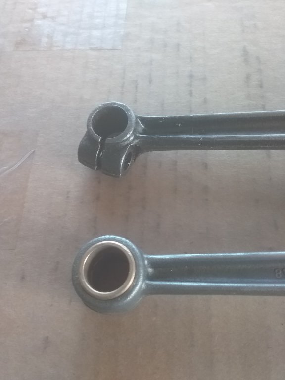 i have some "mystery" connecting rods to identify ... they are the same dimensions as Model T , EXCEPT for the wrist pin ... the photos will show that detail ... all other dimensions are the same as Model T ...the wristpin is bushed with bronze bushing .750" diameter ...