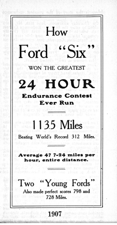 The record holder when Ford won had been a National (single car) in 1905. A 1906 24 hour race was scheduled for Detroit, but was not run.