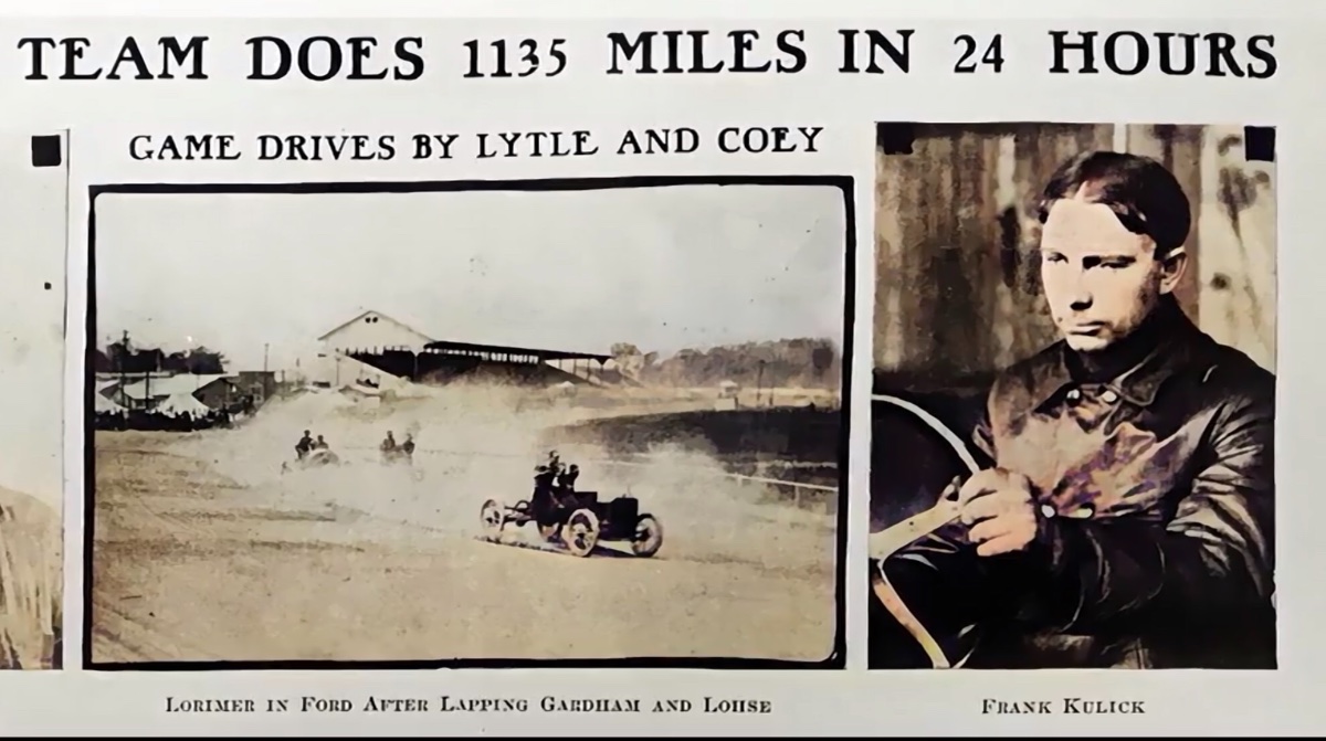 Some Ford historians demote the 24 hour record achievement due to the Detroit race being a relay, two car race. However, when one compares the hour by hour totals of the record one car race (won by a Renault at Morris Park) with the Detroit race, the distances made per hour were comparable. Also, as with the Morris Park race, due to one car for each team, only four cars finished the race:
