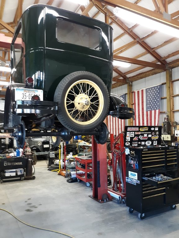 Started up the '18s completed chassis yesterday. After priming with the choke 3 times, it started on the second crank. A yard drive next week. Once my brother is finished with the race car, will use the two post lift for the body installation.