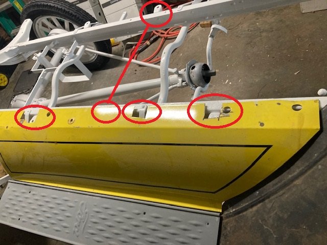 Thanks Kevin, so if the splash aprons sandwich between the lower and upper body bracket I have a MIG welder and can scab a piece of mild steel onto the cut out area...
